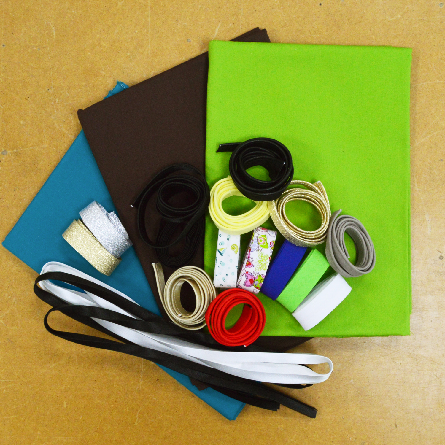 Biais, passepoil en coton, lurex, simili cuir, satin, imprimé… Qui sont en fait des chutes de nos best-seller.