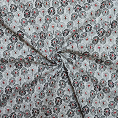 Tissu coton imprimé feather gris vendu par coupon de 50cm ou 1m (Largeur 1m60)