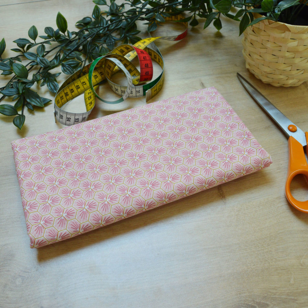 Tissu coton imprimé graphic rose vendu par coupon de 50cm ou 1m (Largeur 1m60)