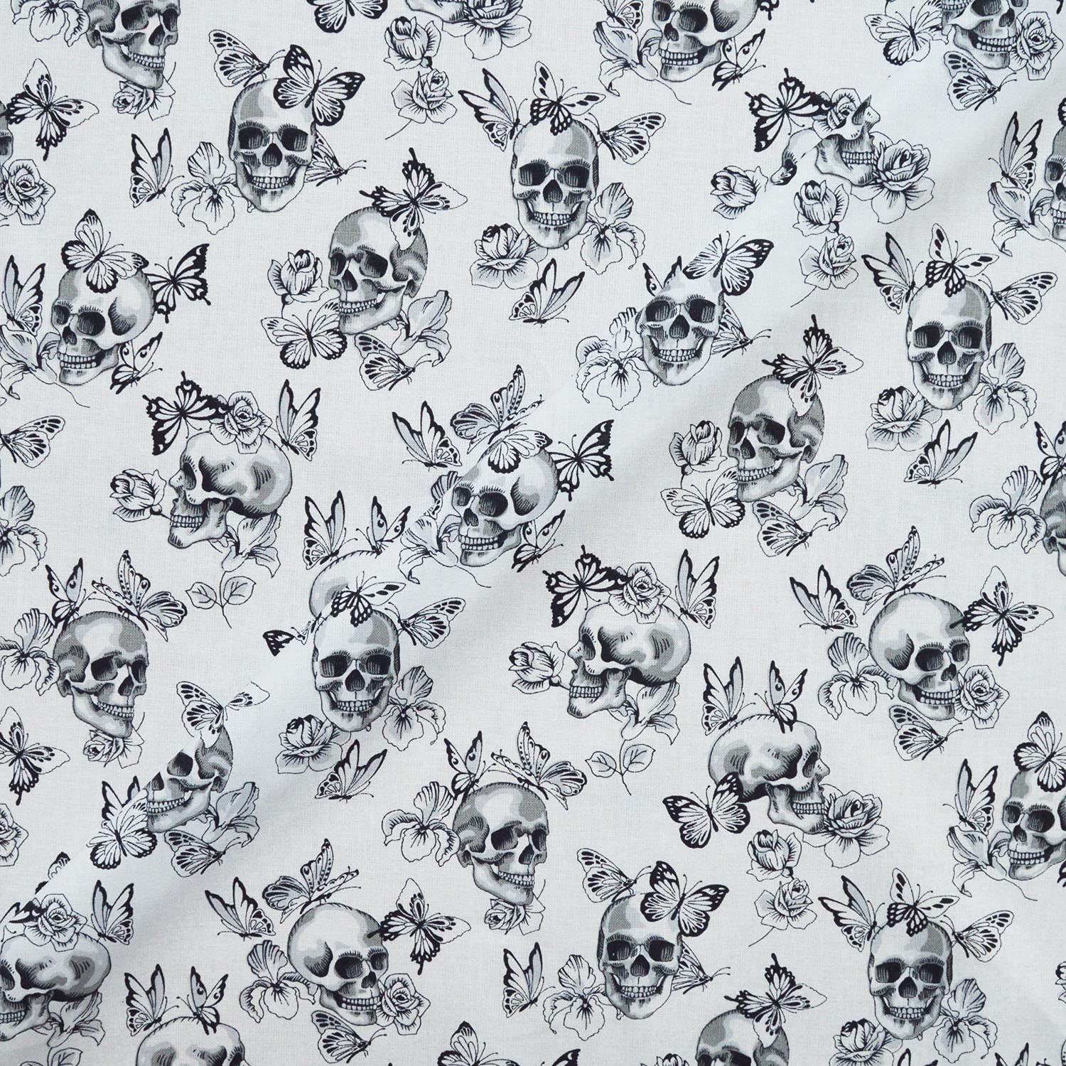 Tissu coton imprimé skull noir et blanc vendu par coupon de 50cm ou 1m (Largeur 1m60)